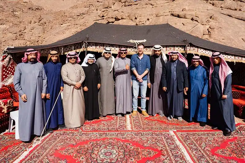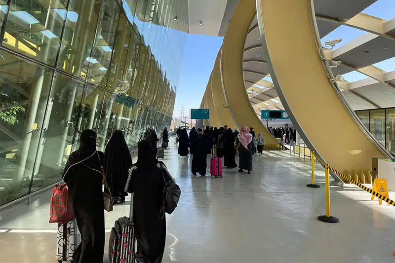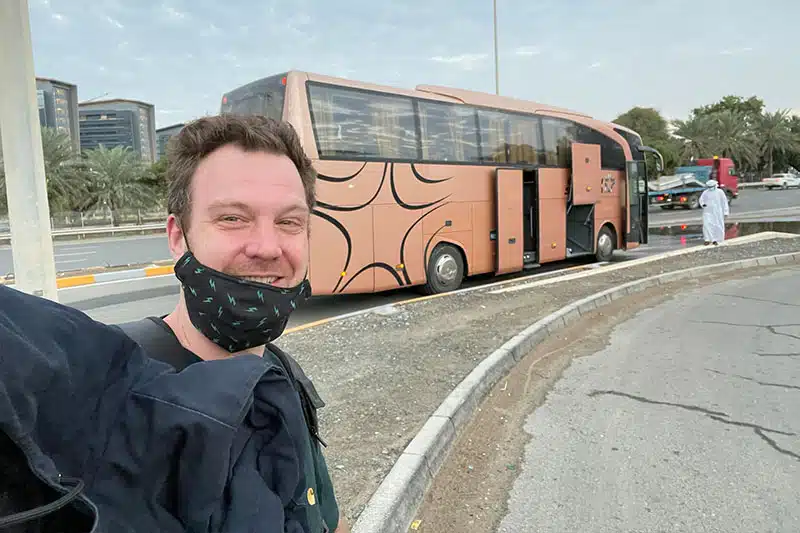 Van daaruit nam ik de Saoedische hogesnelheidstrein naar Riyad. De trein snelde als een ruimteschip door de woestijn. Een uitgestrekte leegte gleed voorbij de ramen, af en toe onderbroken door een kameel. Ik vervolgde mijn reis naar de Emiraten per bus, over de langste rechte snelweg ter wereld.