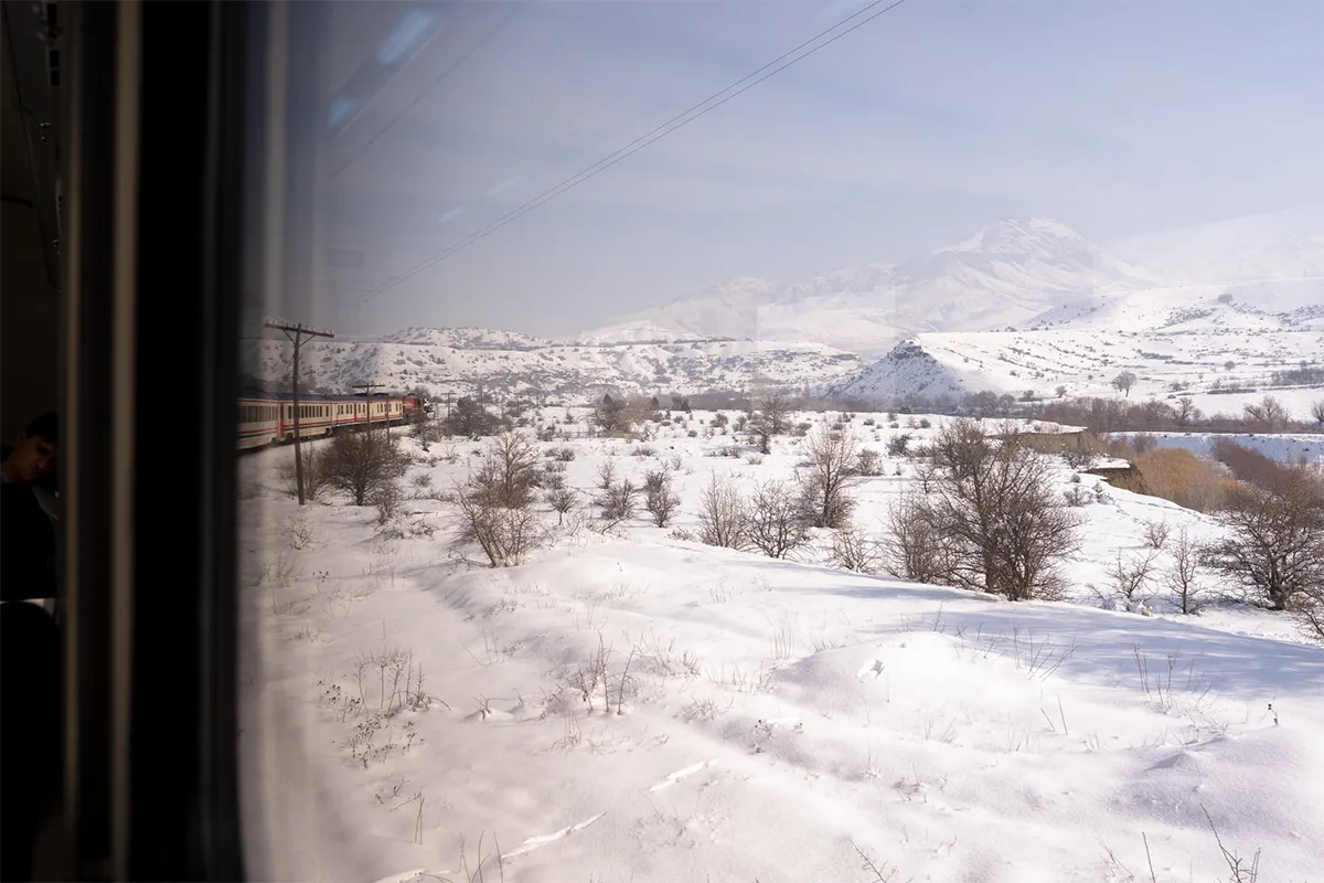 De iconische Doğu Ekspresi bleek de mooiste rit van de hele reis te zijn. Deze route, bekend om zijn adembenemende uitzichten, loopt van Ankara naar Kars en doorkruist het bergachtige en met sneeuw bedekte landschap van Turkije. Het biedt een surrealistische ervaring met uitzichten op afgelegen dorpjes en met sneeuw bedekte valleien. Het ongerepte, landelijke landschap en de rust deden me bijna vergeten dat ik al 17 uur niet had bewogen.